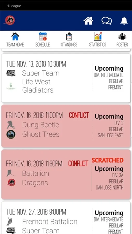 * On multiple teams in different leagues and/or different cities? No problem! Add all of the teams you participate on and view all of their schedules and game results in one easy interface. Games scheduled at the same or overlapping time? See clear indications of when games are in conflict with each other.