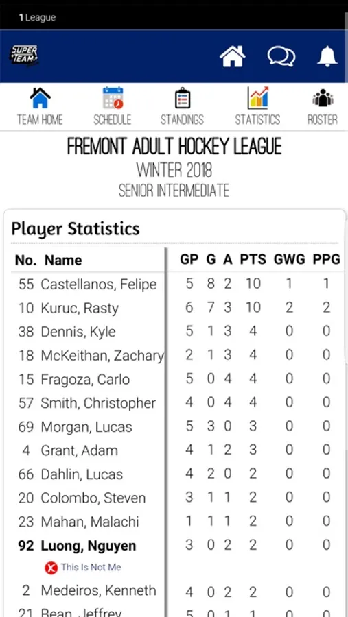 * New 1League ScoreKeeper System (for iPad) to keep score of games with advanced scoring such as shots, hits, and plus/minus by player