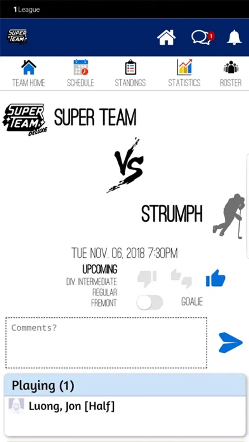 Take your sports team experience to the next level with stats and player recognition after each game played. Team captains (organizers) can manage their rosters with ease. Communicate with everyone on the team via team chat.