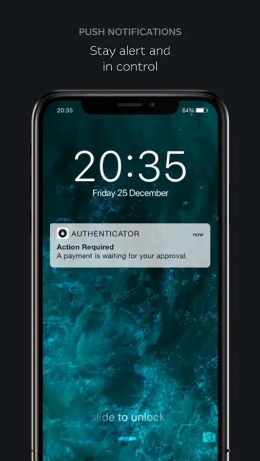 - Receive push notifications for real time authentication to approve or deny online transactions or account changes.