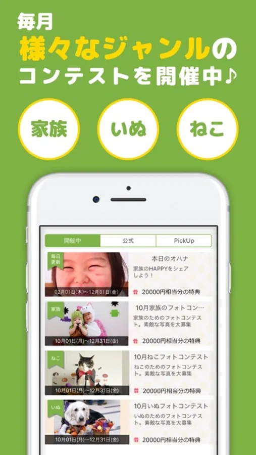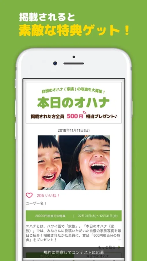 さらに、毎月開催される「家族」「ねこ」「いぬ」のフォトコンテストや、毎日更新される「本日のオハナ」など楽しいコンテストがいっぱい!