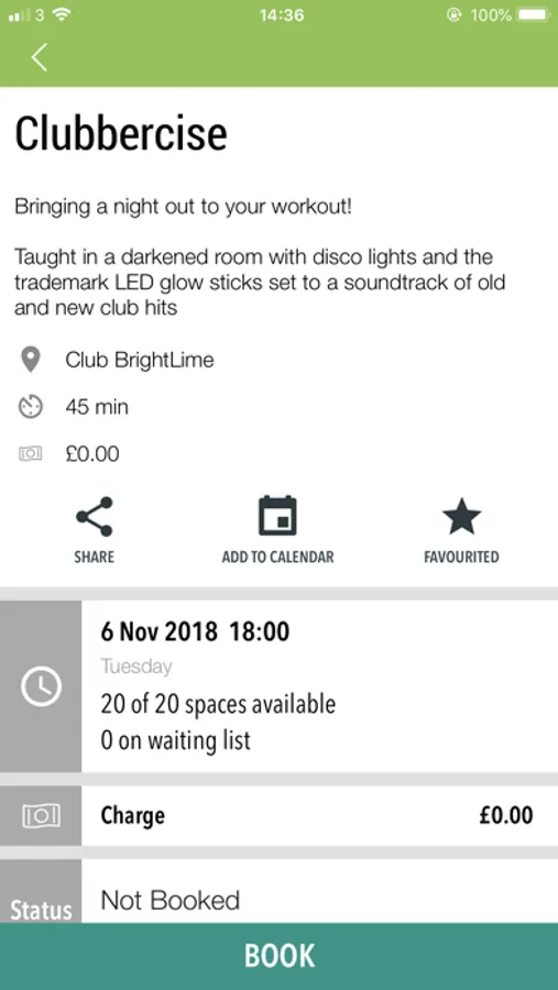 View, make, pay for and cancel exercise class bookings. Share bookings with friends on social media and they can join you with one click.