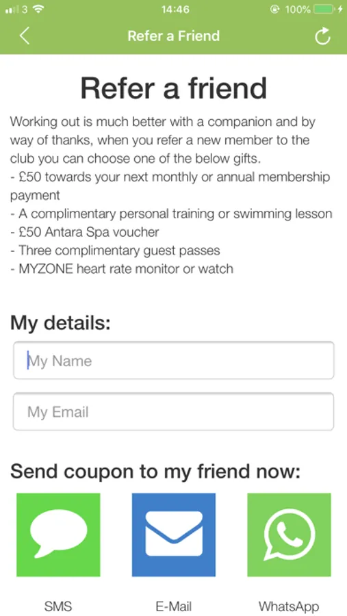 Share articles, classes and bookings with friends through Facebook and other Social Media channels. Share directions, news, facility information and offers with your friends