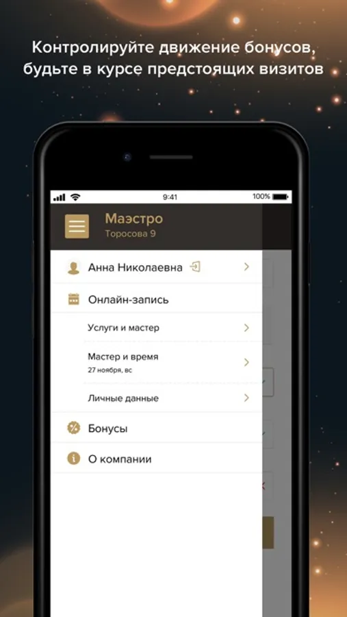 - Личный кабинет с историей всех предыдущих и будущих визитов, а также любимых услуг