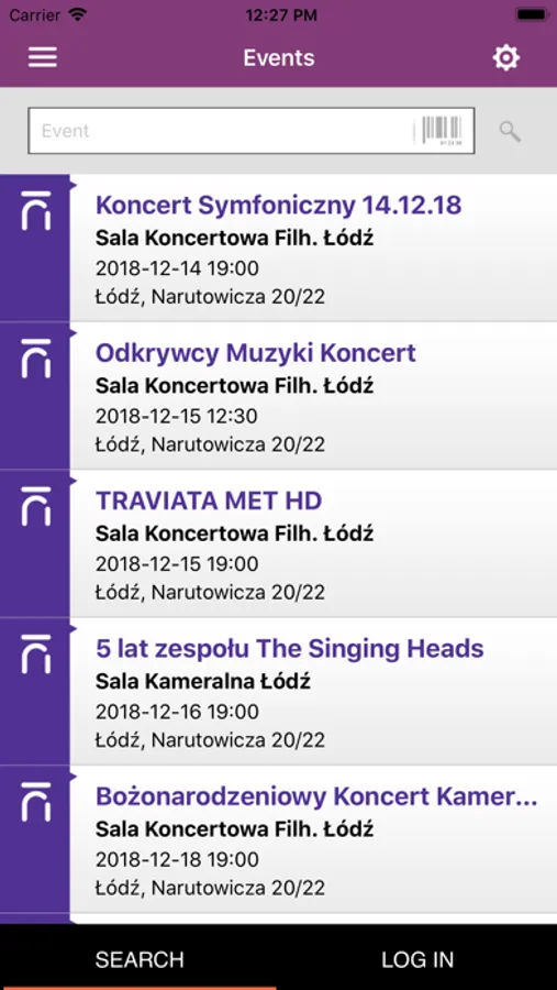 - podgląd zakupionych biletów w aplikacji, QR kod z biletem do okazania obsłudze wydarzenia przy wejściu.