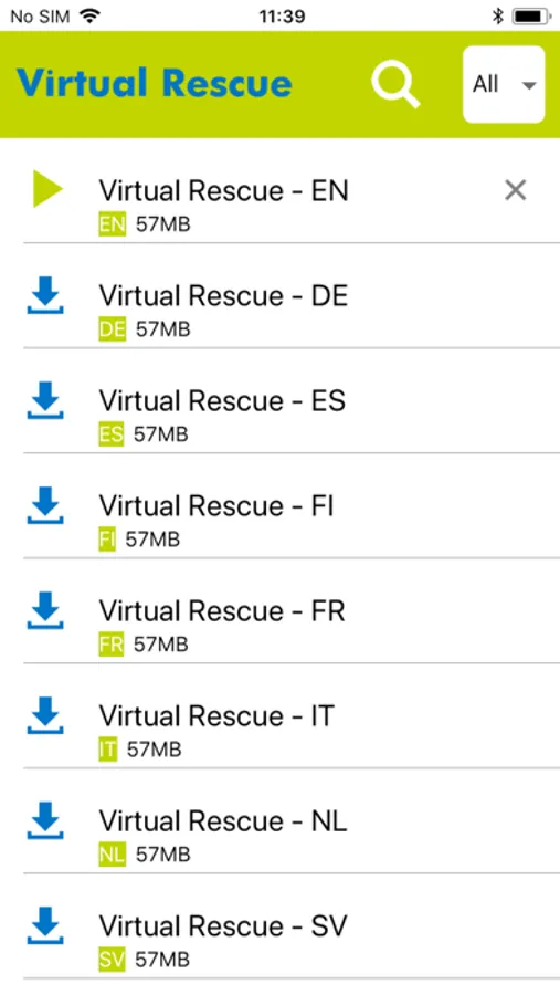 Note that you can download multiple language versions to your smartphone. When a newer version of a previously downloaded experience becomes available this will be indicated when you're online and you can update the video.