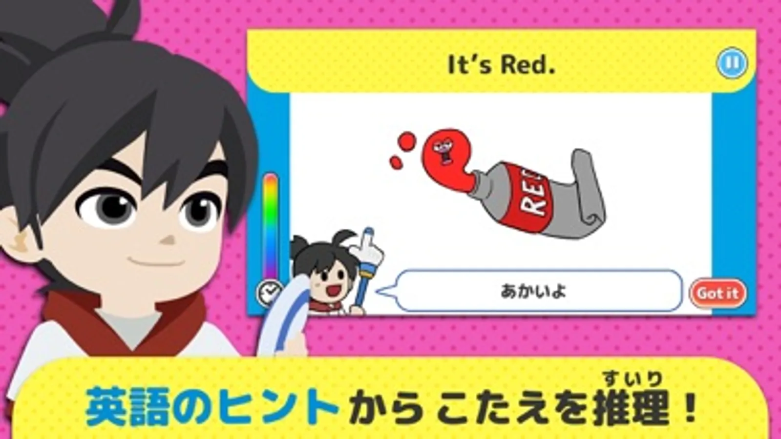 ・ヒントを読み上げる際に、英文の他に日本語訳やイラストも表示されるので、英語がまだ分からないお子様でも楽しめます。