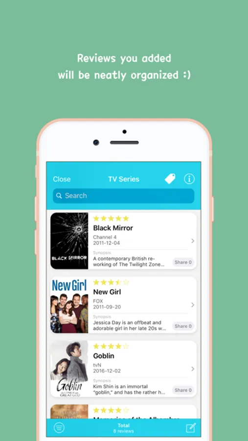 With Open API, you can automatically import data what you want to review, such as a poster, release date, synopsis, etc.
