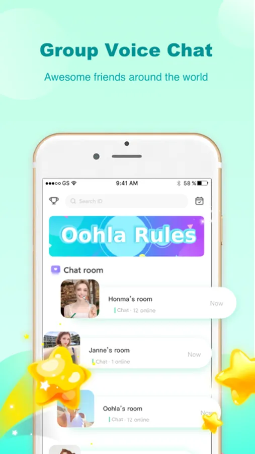Oohla is a group voice chat room app, where people can enjoy anything they want to kill time and have fun together.