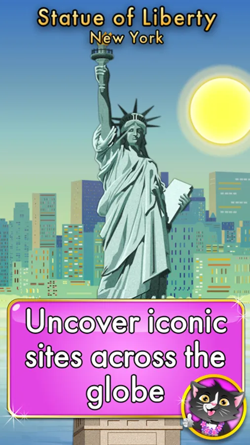 Each Wonder of the World and famous place has been delightfully illustrated to create a truly captivating experience. Give a wave to Lady Liberty, marvel at The Great Wall of China, and relax at Venice Beach.