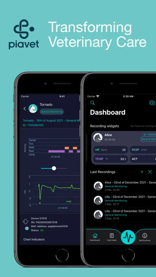 Piavet for iOS allows equine veterinarians and practitioners to easily start vital sign measurements, view real-time health data, and access patient information on an iPad or iPhone. Vital sign data is at your fingertips with our easy-to-use patient management platform. Put those hours spent doing manual checks back into your day.