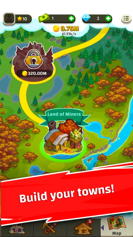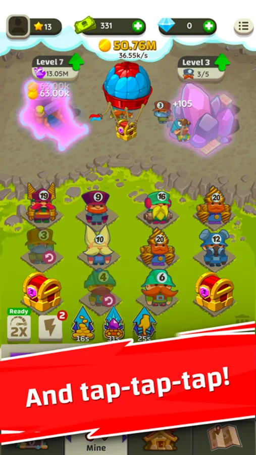 Upgrade your Miners, extend the Town, progress to the new undiscovered lands and Tap-Tap-Tap!