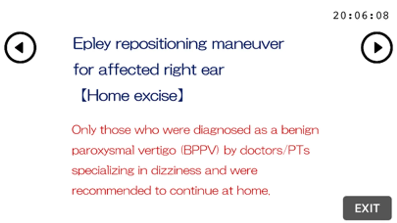 This appli shows how to do "Epley repositioning maneuver" as home excise.