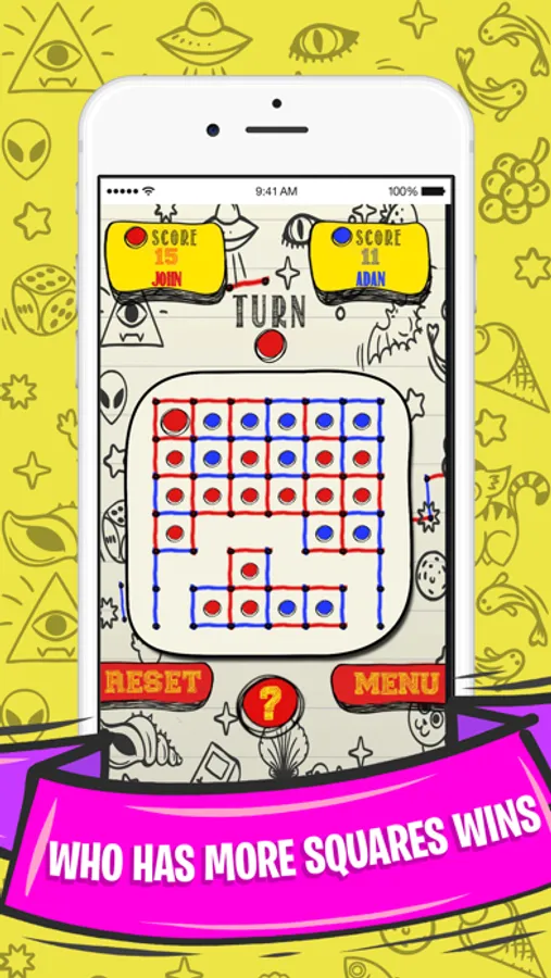 The classic Dots and Boxes game to remember childhood. Also known as Paddocks, Square-it, Dashes, Dots, Smart Dots, Dot Boxing, or Dot Game
