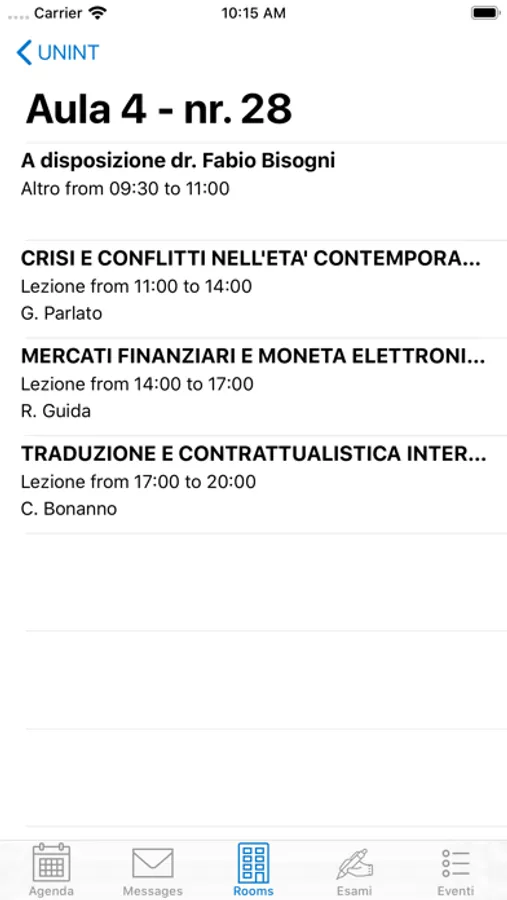 - Disponibilità delle aule in tempo reale.