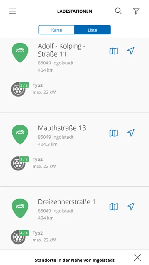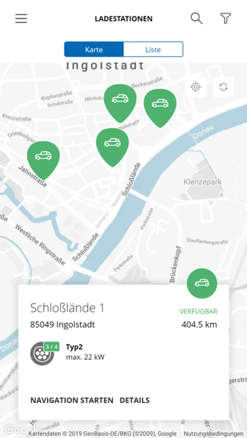Die Navigationsfunktion hilft Ihnen, auf kürzestem Weg zur Ladestation Ihrer Wahl zu navigieren.