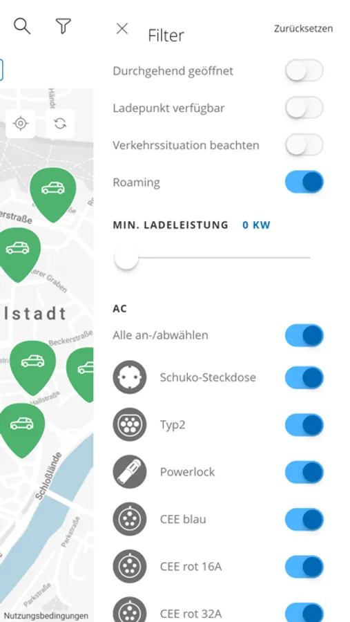 • Live-Anzeige aller verfügbaren Ladepunkte im SWI-Netzwerk