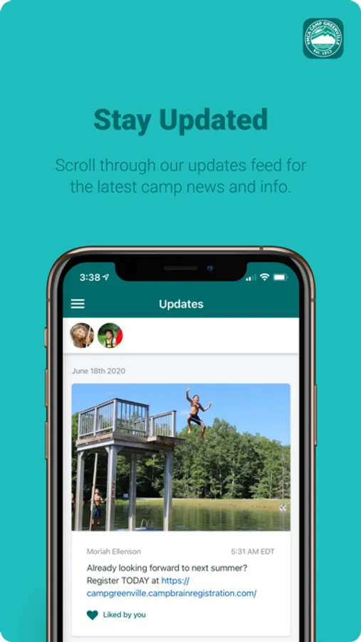 - Photo albums; Save and share photos right from the Camp Greenville Live app.
