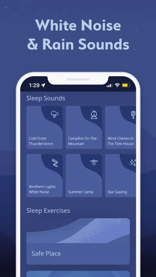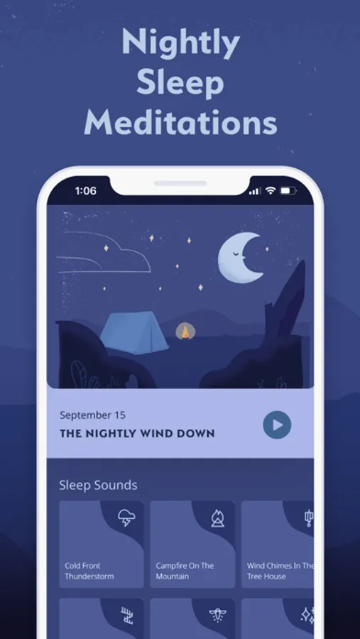 Rain sounds, relaxing music, daily morning & bedtime meditations, podcasts, guided sleep exercises, positive affirmation meditations, and emotion-specific meditations on topics such as stress, anxiety, disappointment, finding your purpose, loneliness, self-esteem, happiness, depression, and many more.