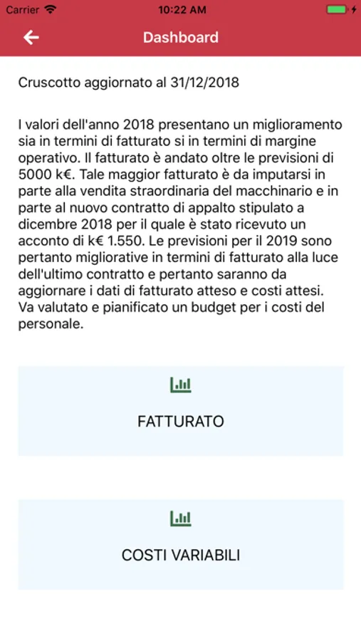 - Visualizzare il CRUSCOTTO: con un grafico immediato, semplice ed intuitivo hai sempre una visione aggiornata dei principali dati della Tua azienda (fatturato, fatturato obiettivo, fatturato anno precedente, dati di costo specifici o generici, ecc..);