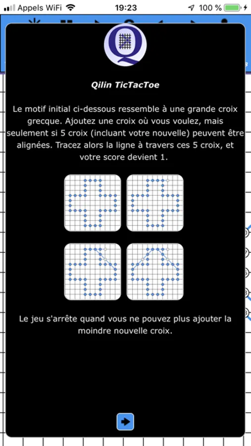 Qilin TicTacToe est une version électronique du jeu "Morpion Solitaire". Le jeu vous permet de sauvegarder et recharger vos meilleures parties, de trouver la prochaine combinaison ou encore d'annuler le dernier coup. Le mode "pause" permet d'enregistrer la partie en cours pour la terminer plus tard.