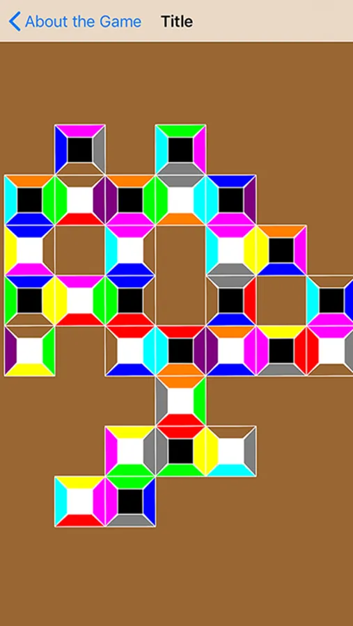 This is a domino-like game in which tiles are square with each edge painted in some color. You play against the App. You both are assigned some number of tiles and get rid of them placing them on the Line of Play matching colors of edges. Wins the one who first get rid of tiles.