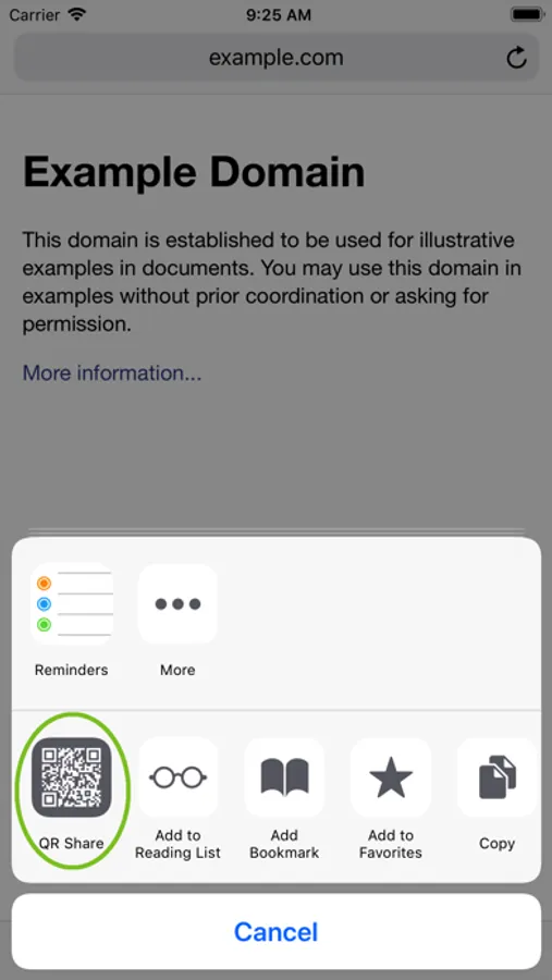 App extension works in many contexts: Whenever an app allows you to share things, QShare will likely offer an option to share.