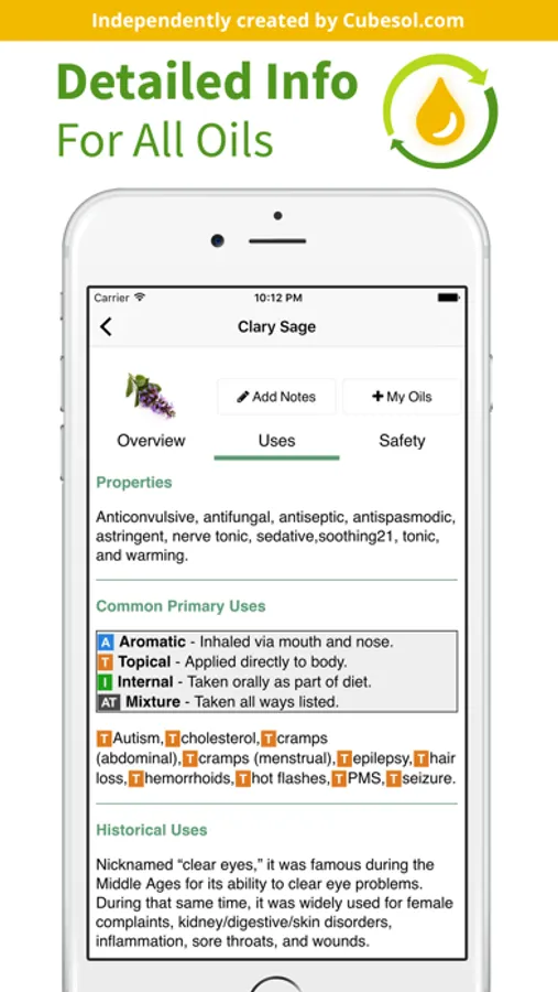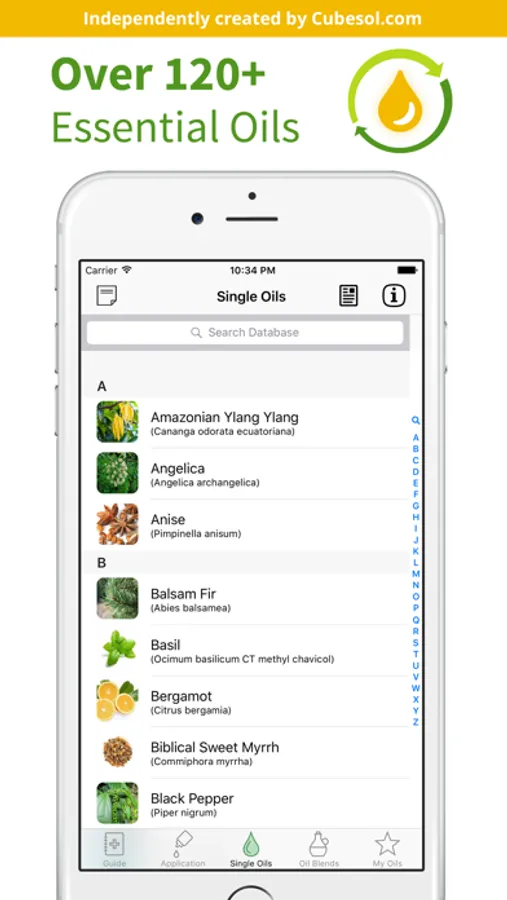 - Information on over 120 essential oils