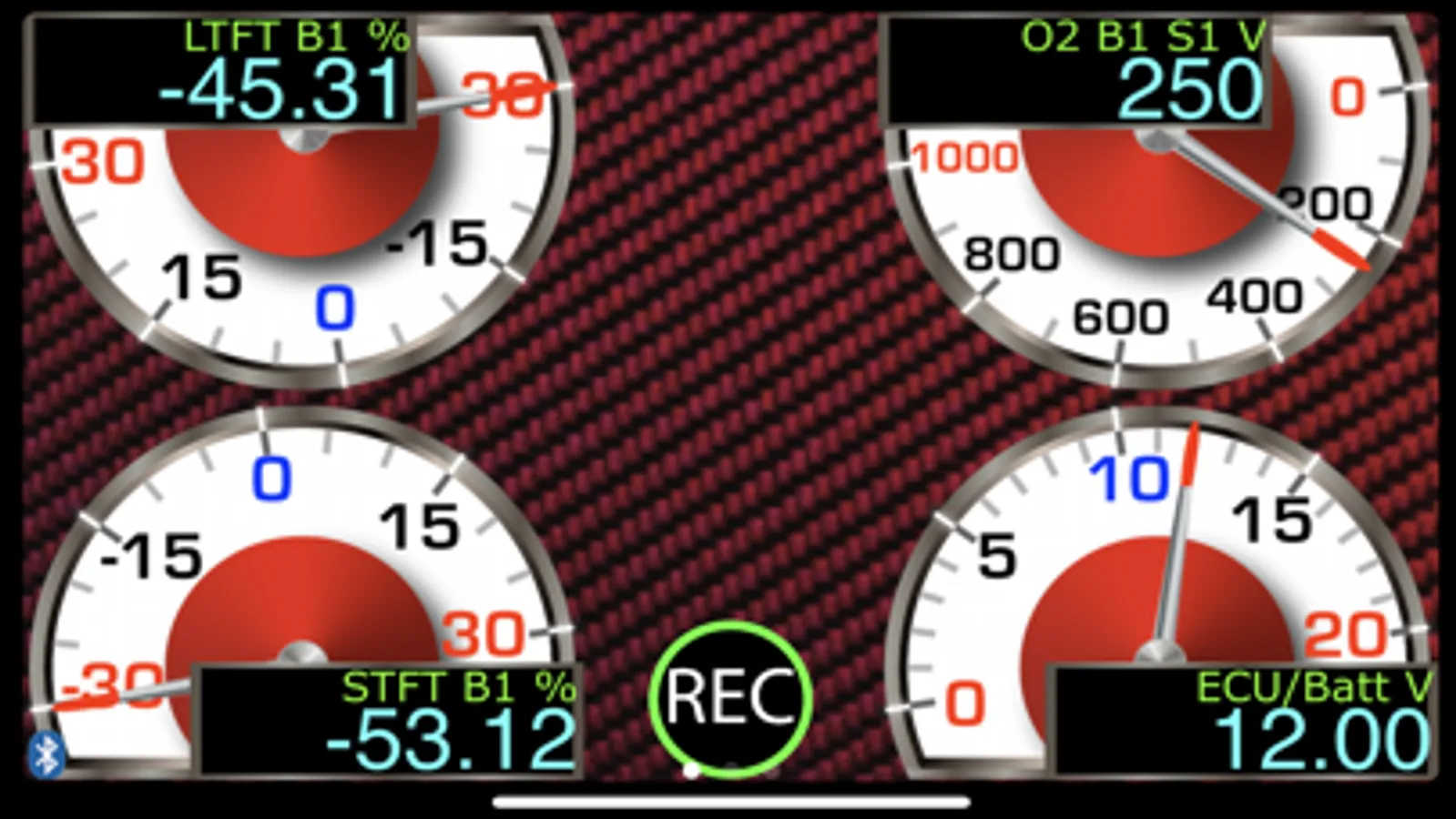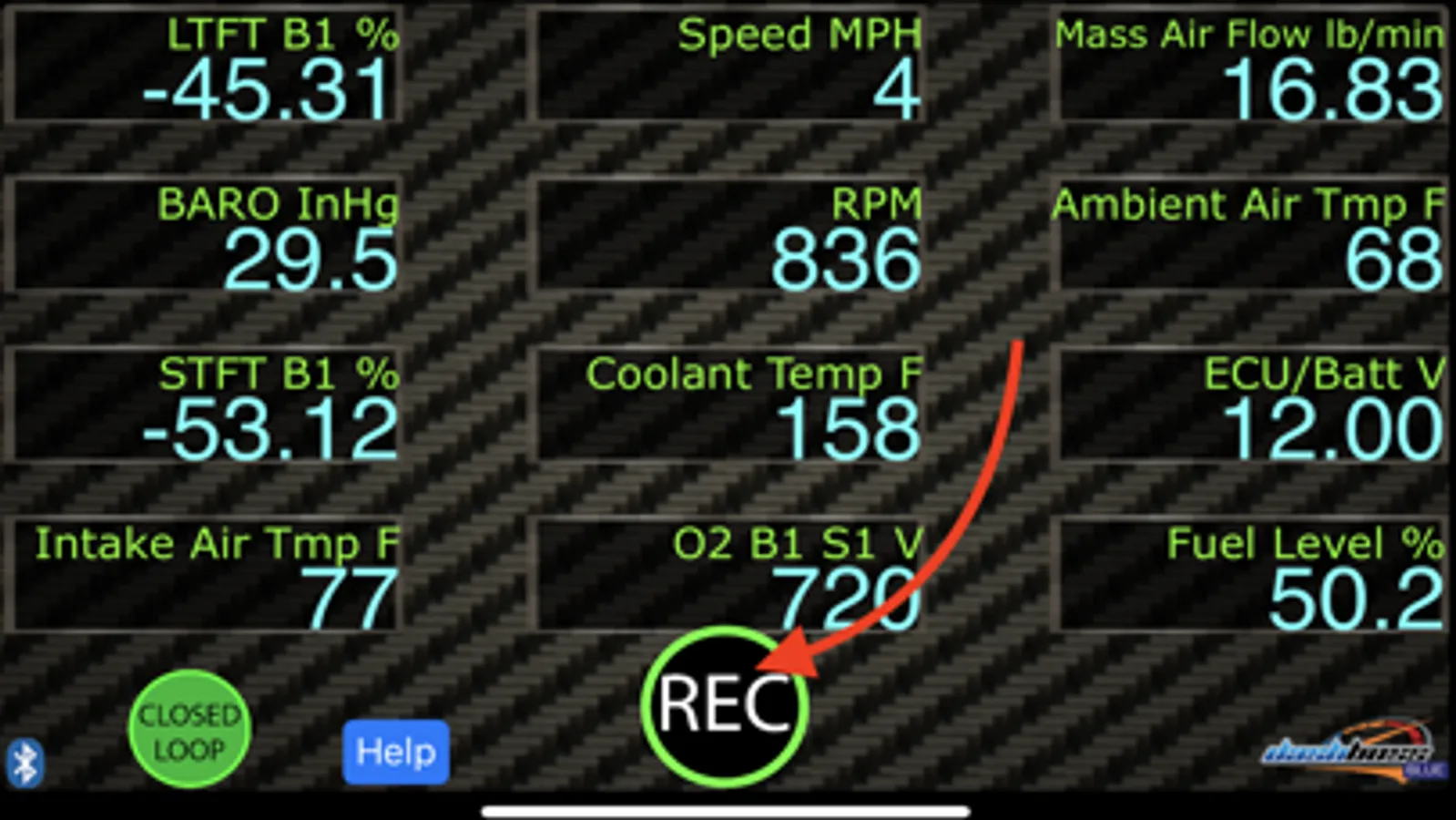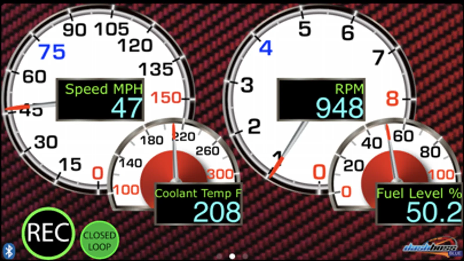 * Simply touch the RECORD button on the dashboard screen at any time to start and stop data logging sessions.