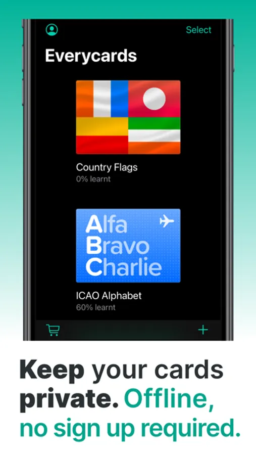 • Your card files are only stored on your device. No one knows what, when and how you study.