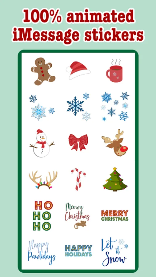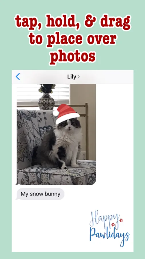 Featuring lovable favorites like the gingerbread man, a Santa hat, snowflakes, and a reindeer. Also some fun text/words stickers that you can use as responses, like "Merry Christmas" and "Happy Pawlidays"