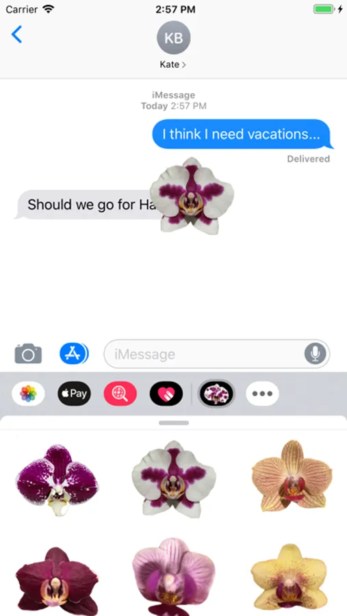 Enjoy the beauty of orchid stickers in your chats regardless if they are in iMessage or Whatsapp with direct access to the stickers. For other apps you can copy or share them directly from within the app.