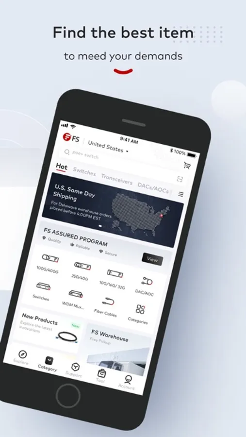 The app of FS is the simple, fast and secure way to shop your networking products/solutions for data center, enterprise, telecom and manage your orders from anywhere/anytime. Browse products by category, explore network conectivity solutions, ask for technical support, read product reviews, and check the status of your orders.