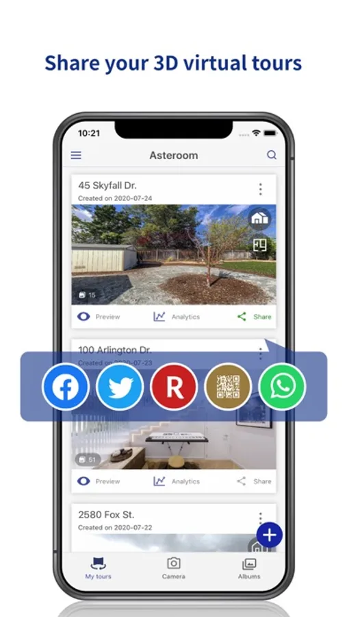 Asteroom is the easiest way to create 3D virtual tours. A 2000 sqft home can be completed in 10-15 minutes. Unlike other time-consuming solutions that require you buy expensive and bulky 3D cameras, Asteroom allows you to do everything including shooting, editing, and sharing the tours on your phone.