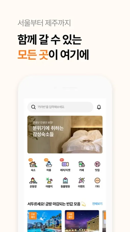반값이 넘게 할인되는 숙소와 반려생활 특별할인이 들어간 액티비티 핫딜도 확인해 보세요.