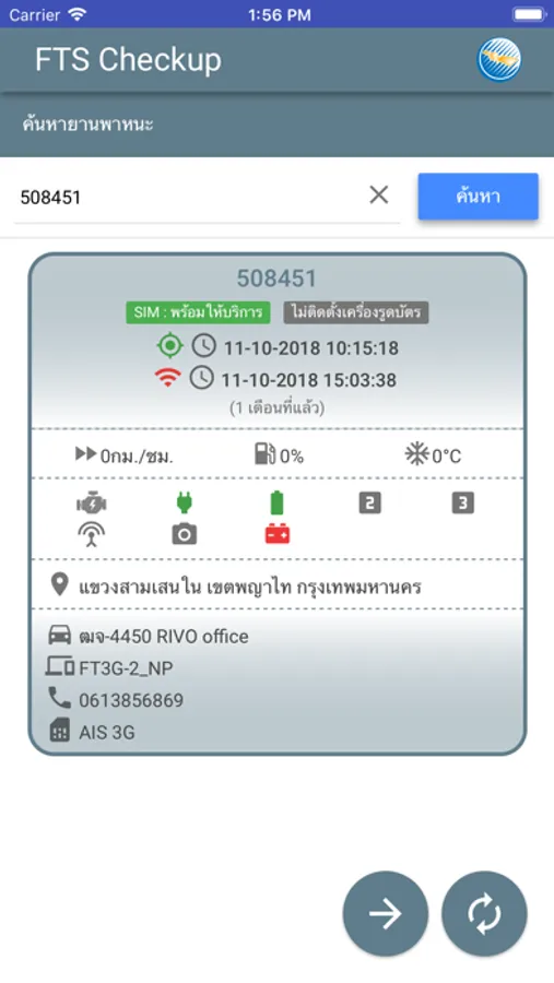 แอพพลิเคชั่นสำหรับตรวจสอบสถานะอุปกรณ์ของบริษัท ฟอร์ท แทร็คกิ้ง ซีสเต็ม จำกัด โดยมีรายละเอียดดังนี้