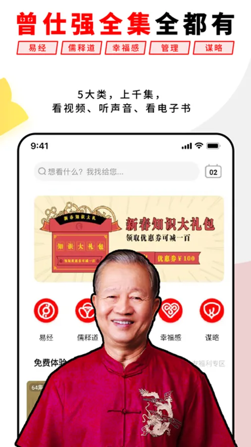 集曾仕强教授历年游学讲座视频,去其重复,取其精华,校编剪辑成全网最完整的曾教授视频大全集。分为易经、儒释道、管理、幸福感、谋略五大板块,数千集内容,外加人生规划推演板块,一次性满足您学、悟、玩、用的需求,是通达易经思维的不二选择。