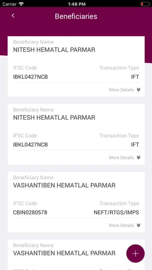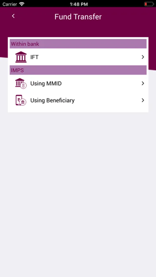 - Fund transfer: Other Bank's accounts through IMPS using IFSC and Account Number