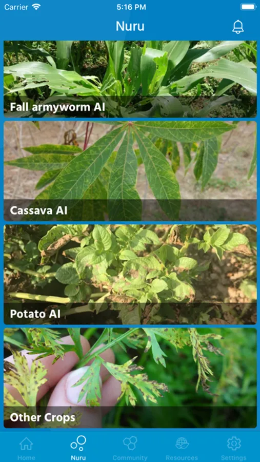 PlantVillage Nuru is a publically supported, and publically developed application that uses a digital assistant to help farmers diagnose crop disease in the field, without an internet connection. Developed at Penn State University the app uses Google’s Tensorflow machine learning tool and a database of images collected by crop disease experts across the world. The app is based on extensive research comparing the accuracy of machine learning models to human experts and extension work. This is continual research and the app will be constantly updated. The app also allows for a blended model where images are examined by AI and human intelligence through a cloud system. This app was developed with International Institute of Tropical Agriculture and the United Nations Food and Agricultural Organization. We welcome further collaboration with public institutions. This app is a public good and is not commercial or backed by venture capitalists. We do not have advertisements or collect farmer data to sell to third parties. You can donate if you like https://plantvillage.psu.edu/. In addition to the diagnostic tool the app contains the library of knowledge that is on PlantVillage, the largest open access library of crop health knowledge in the world.