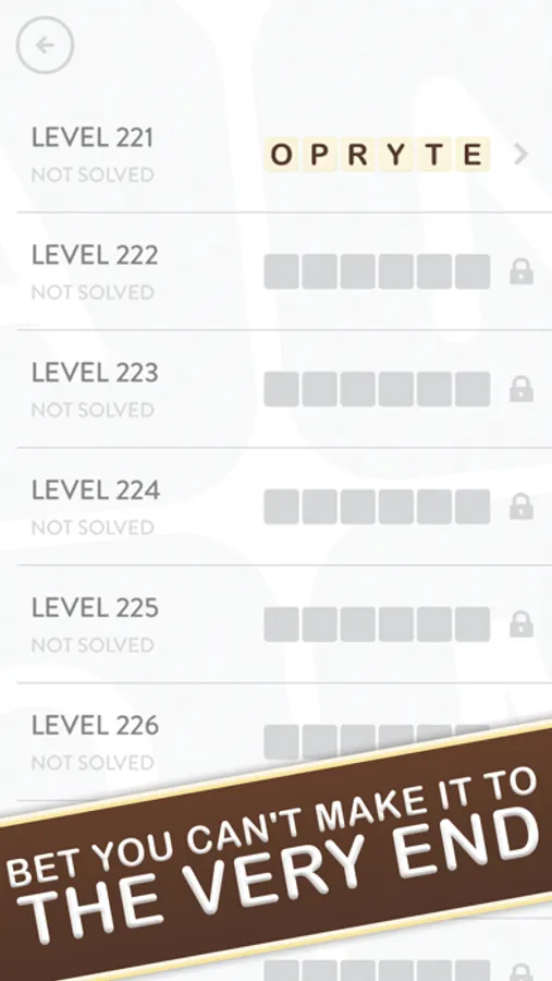 • Start from the easiest word challenge level to the hardest ones.