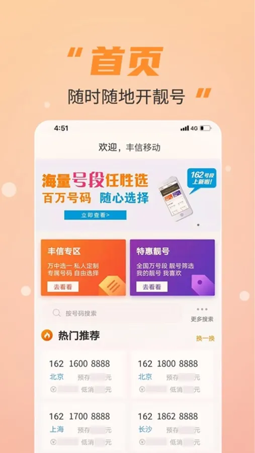 丰信移动营业厅是一款专业服务丰信移动全国代理商的免费app,提供方便快捷的丰信手机码号开户、充值、业务查询等功能,随时随地享受优惠信息、靓号选购和其他特色服务。
