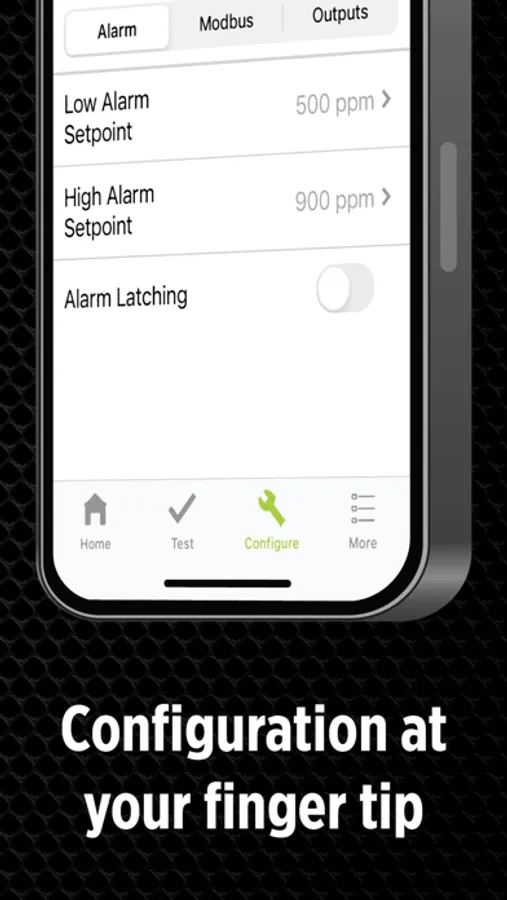 - Configuration (Rename device, define alarm thresholds, adjust Modbus settings,