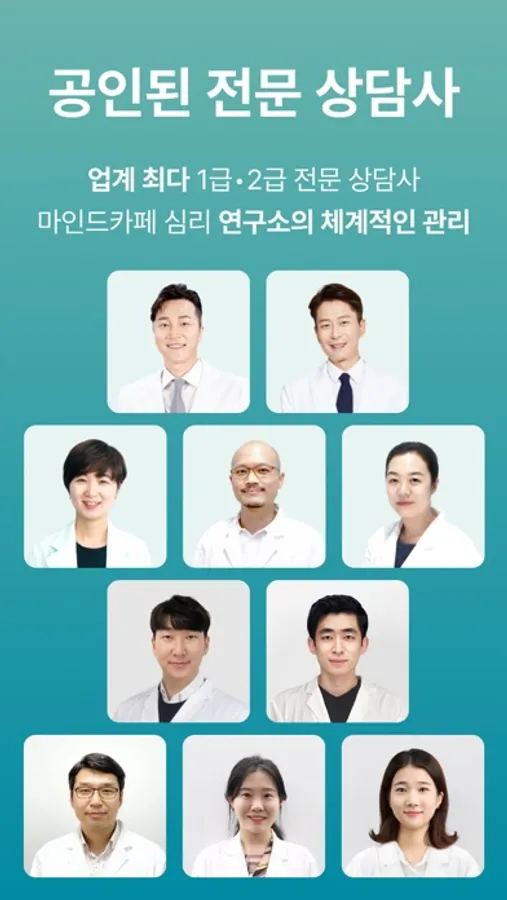 석/박사 학력, 공인 자격증, 경력. 이 3가지가 모두 검증된 국내 최고의 마인드카페 전문가님들과 심리상담 및 코칭을 진행하실 수 있습니다.