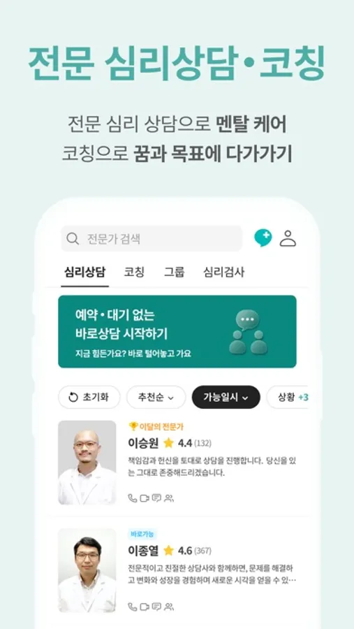 권한을 허용하지 않을 경우, 상담/코칭을 위한 전문가의 채팅이나 전화 알람을 받을 수 없어요.