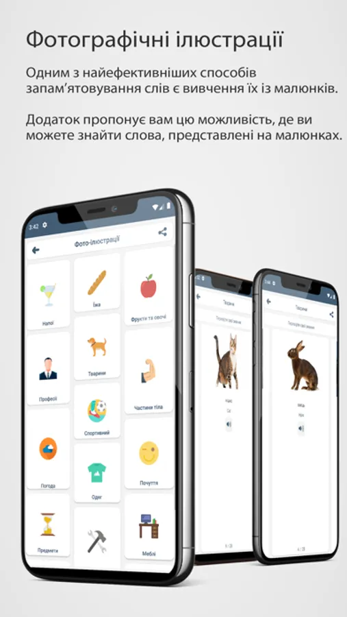 Додаток надає вам цю можливість, де ви можете знайти слова, проілюстровані малюнками
