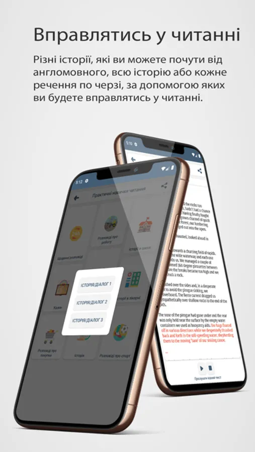 Потім потренуйтеся читати різні історії, щоб почути їх від англійської мови, цілу історію чи кожне речення окремо.