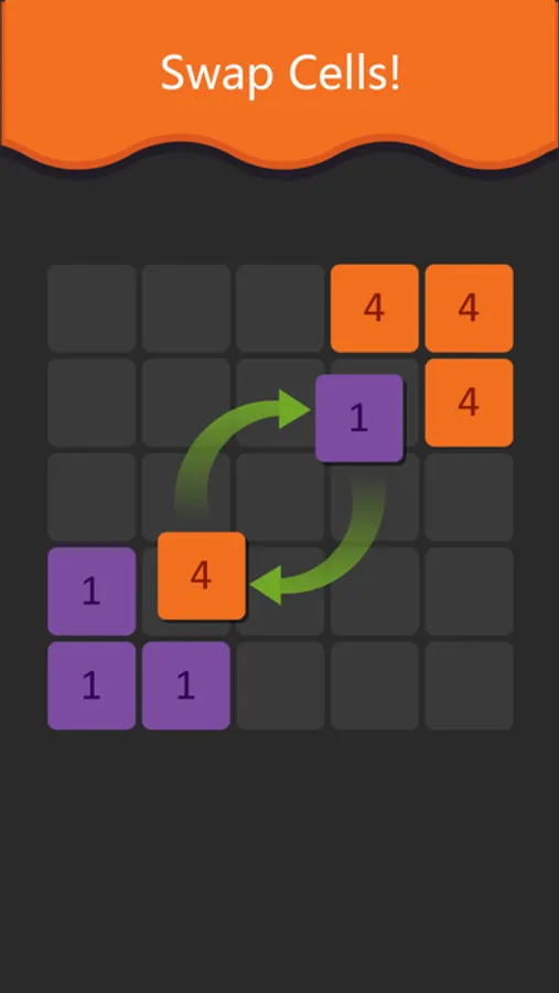 Tap to swap cells. When 4 cells with the same number connect, they merge into one. 1 .. 4 .. 16 .... 2048 .. 4096.