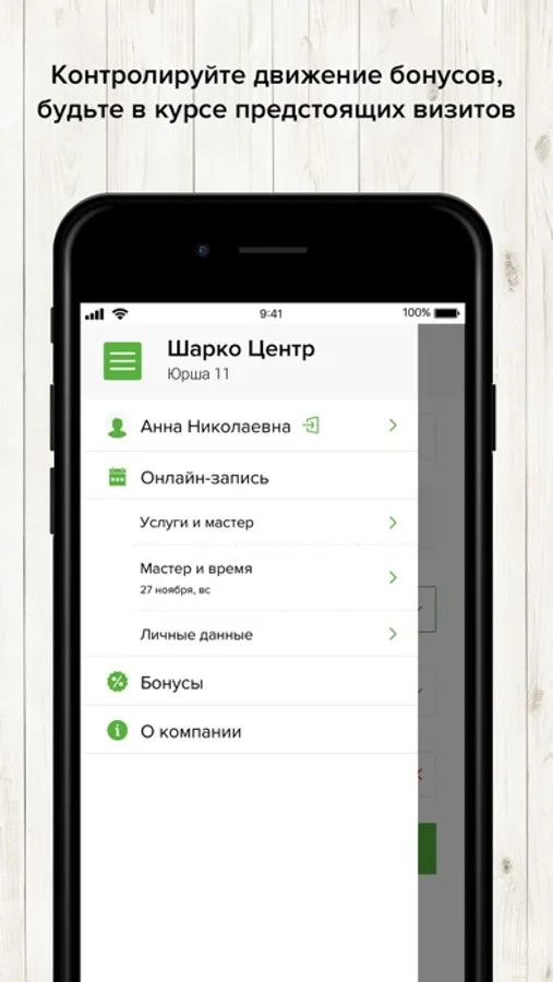 - Личный кабинет с историей всех предыдущих и будущих визитов, а также любимых услуг