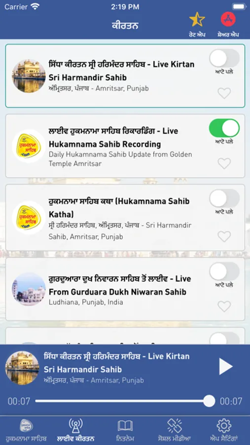 ► AutoPlay Live Kirtan – An option is provided in-app settings tab to enable/disable autoplay live kirtan.