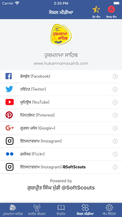 ► Sharing Feature – Various Buttons added in Hukamnama Sahib Tab to share Image of Hukamnama Sahib easily with one click through various social networking channels like Facebook, Whatsapp, Twitter, Instagram etc.